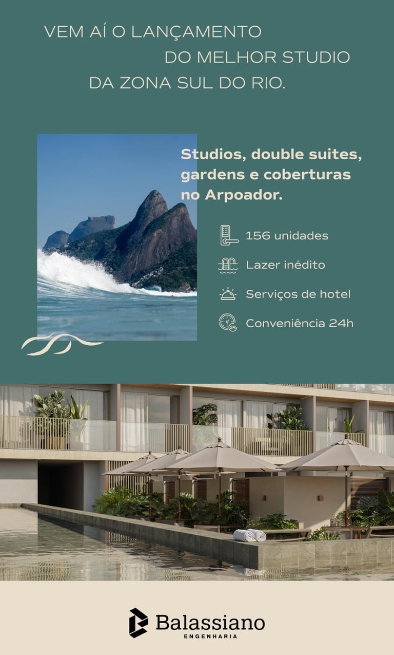 BREVE LANÇAMENTO: STUDIOS E SUÍTES COM TODO O ESTILO DO BALASSIANO, NO MELHOR DE COPACABANA.